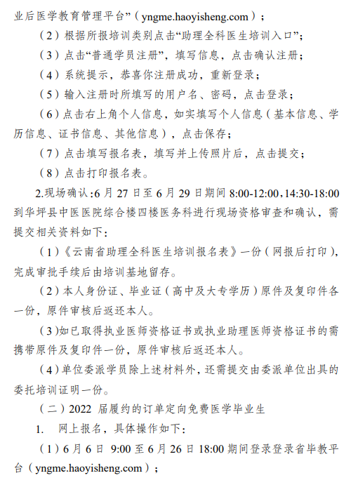 以上就是“云南華坪縣中醫(yī)醫(yī)院2022年中醫(yī)助理全科醫(yī)生培訓(xùn)招收簡章”的全部內(nèi)容,由醫(yī)學(xué)教育網(wǎng)小編整理,希望對您有所幫助!想要了解更多關(guān)于住院醫(yī)師規(guī)范化培訓(xùn)考試相關(guān)政策,請繼續(xù)關(guān)注此欄目!