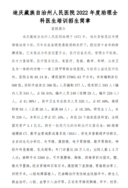 相關(guān)附件:云南迪慶州人民醫(yī)院2022年助理全科醫(yī)生招生簡(jiǎn)章