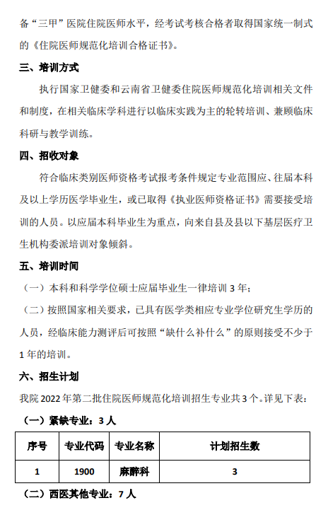 相關(guān)附件:云南省第三人民醫(yī)院2022年第二批住院醫(yī)師規(guī)范化培訓(xùn)招生簡章